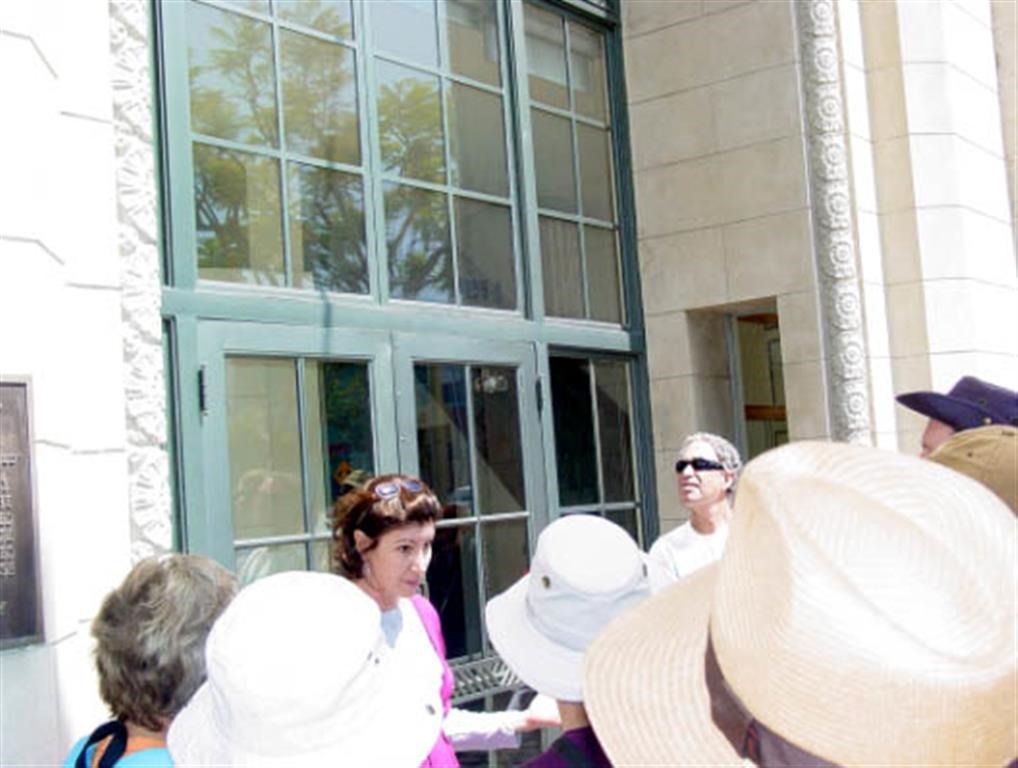 Celebrating May as “Historic Preservation Month,” the walking tour of downtown Culver City included a visit to the Citizen Building (built in 1929). Owner Josetta Sbeglia (above photo, in pink) took the docent duty at her building to talk about historic preservation.